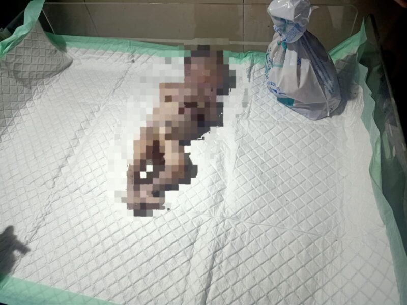 Ditemukan adanya handscol (peralatan medis) pada bagian pusar bayi yang diduga digunakan saat proses persalinan. Kondisi bayi sudah dimandikan, namun terdapat memar di bagian leher serta betis kiri dan kanan yang diduga akibat proses persalinan yang tidak wajar.