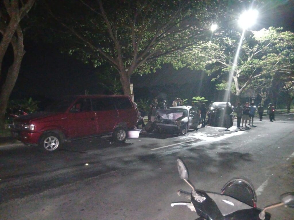 Lombokdaily.net -Kecelakaan beruntun terjadi di ruas Jalan Raya Dusun Waker Ketapang, Desa Penujak, Kecamatan Praya Barat Daya, Lombok Tengah, pada Minggu (28/9). Tiga unit kendaraan terlibat dalam insiden ini, yaitu Toyota Innova Reborn, Honda Accord, dan Isuzu Panther.