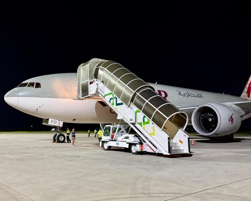 Maskapai : Qatar Airways Cargo dan Malaysia Airlines Cargo. Rute : Lombok ke Avalon (Australia) dan Kuala Lumpur (Malaysia)