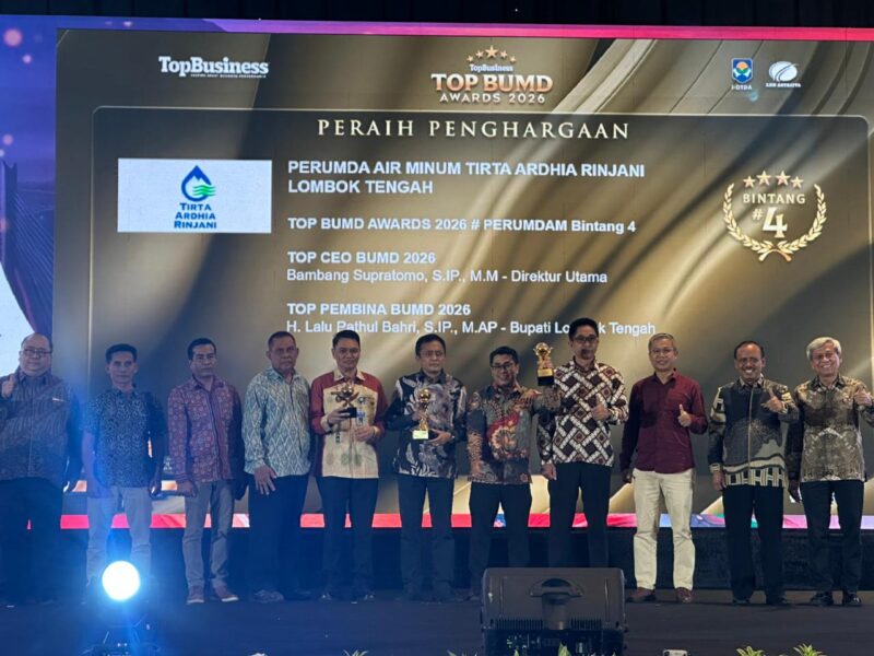 Prestasi ganda juga diraih PDAM Lombok Tengah. Selain Bupati sebagai TOP Pembina, perusahaan air minum daerah itu meraih TOP BUMD Bintang 4. Direktur Utama PDAM Loteng, Bambang Supratomo, S.IP, MM juga diganjar TOP CEO BUMD 2026.