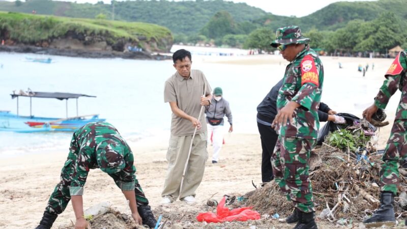 Bupati Loteng Bersama Masyarakat Lakukan Pembersihan di Pantai Tanjung Aan.