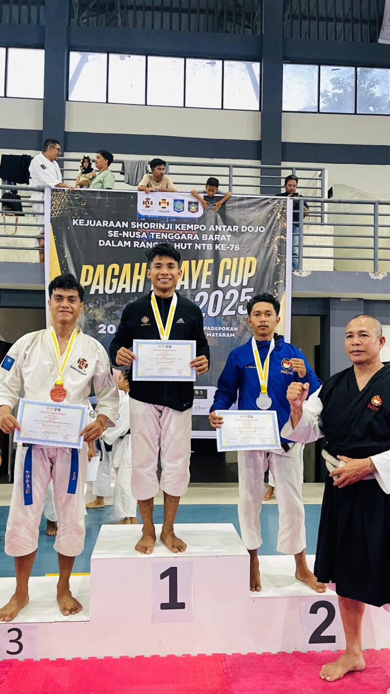 Lombok Tengah,(NTB) – Prestasi membanggakan kembali ditorehkan oleh personel Sat Lntas Polres Lombok Tengah. BRIPDA Rizkiawan Dwi Santriaji berhasil meraih Juara I pada Kejuaraan Antar Dojo Shorinji Kempo Open Se–Nusa Tenggara Barat yang diselenggarakan selama dua hari mulai tanggal 20–22 Desember 2025, bertempat di GOR Padepokan Silat Kota Mataram.
