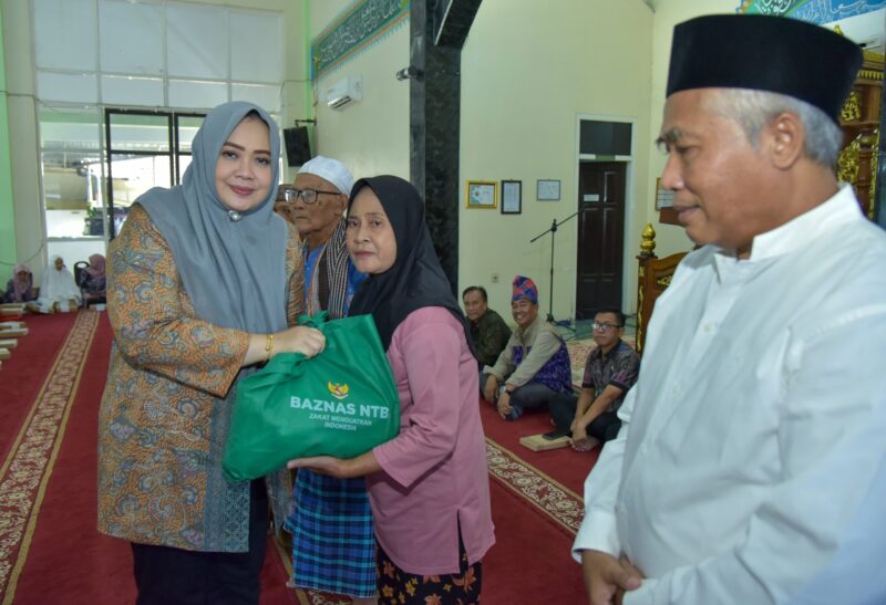 Wagub NTB juga menyerahkan bantuan paket sembako dari Baznas dan karpet masjid senilai Rp10 juta untuk mendukung kenyamanan jamaah di Masjid Al Falah.(TH).