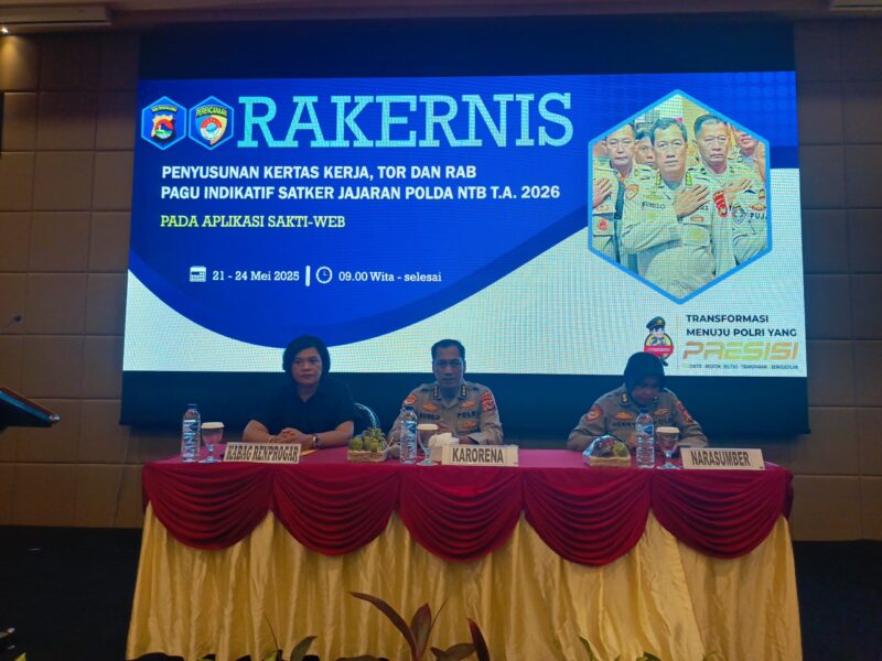 Mataram– Kepolisian Daerah Nusa Tenggara Barat (Polda NTB) terus menunjukkan komitmennya dalam meningkatkan tata kelola anggaran yang transparan dan efektif. Hal ini diwujudkan melalui pelaksanaan Rapat Kerja Teknis (Rakernis) Penyusunan Kertas Kerja, TOR, dan RAB Pagu Indikatif Tahun Anggaran 2026 yang digelar di Melati Ballroom, Lombok Garden Hotel, Mataram, Rabu (21/05/2025).