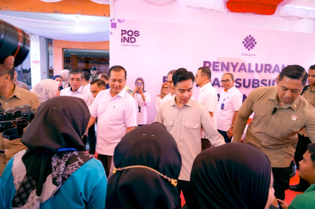 MATARAM -Gubernur NTB, Dr. Lalu Muhamad Iqbal, mendampingi Wakil Presiden RI, Gibran Rakabuming Raka, dalam penyaluran langsung Bantuan Subsidi Upah (BSU) Tahun 2025 kepada para penerima manfaat di Kantor Pos Mataram, Jumat (1/8). Dalam kunjungannya, Wapres berpesan agar dana bantuan dari pemerintah dimanfaatkan secara bijak untuk kebutuhan yang produktif dan mendesak, khususnya dalam mendukung pendidikan anak.
